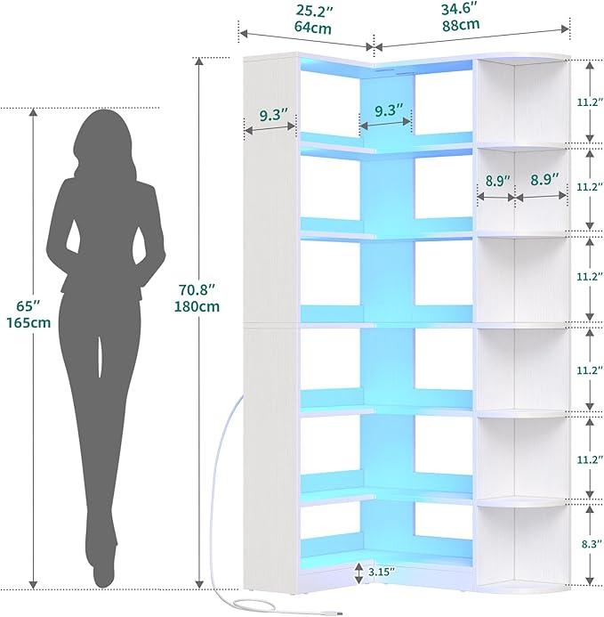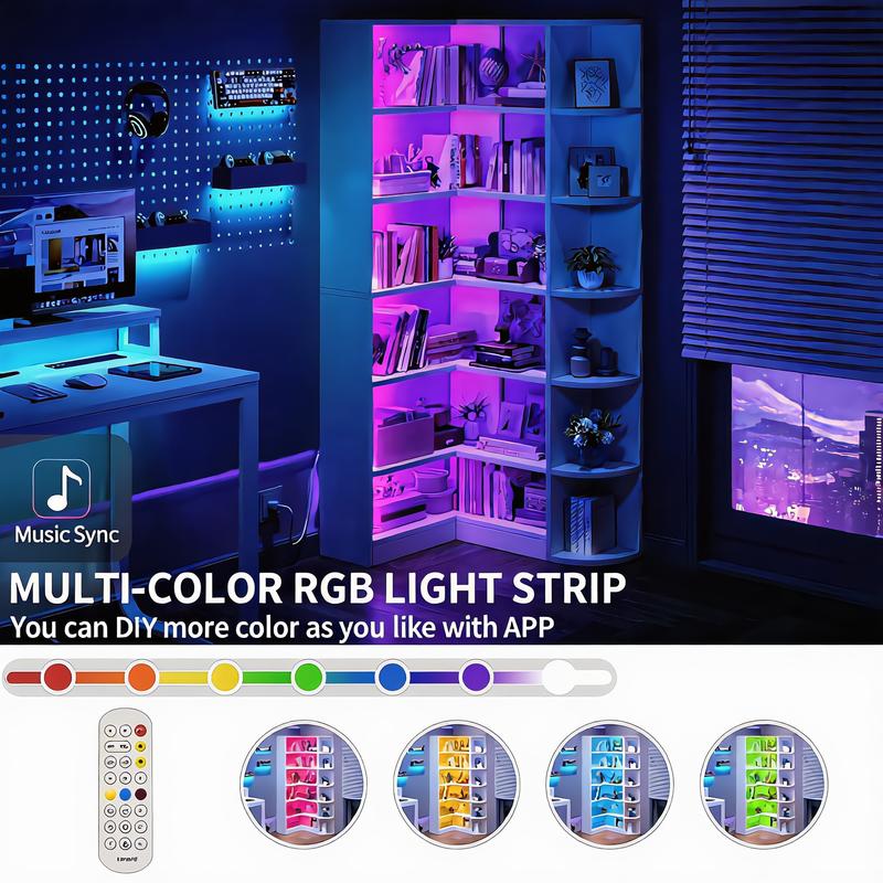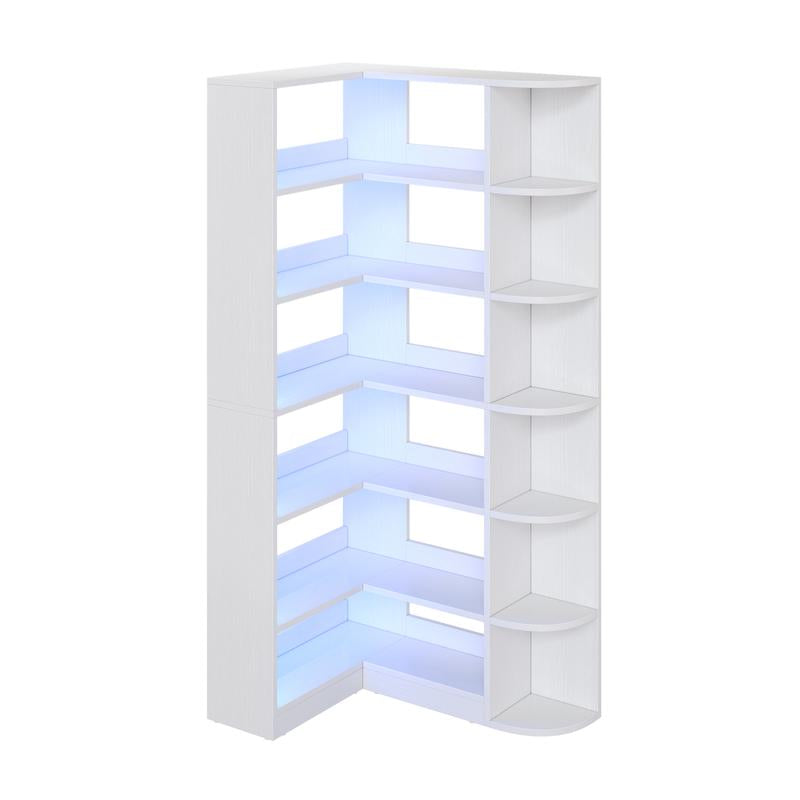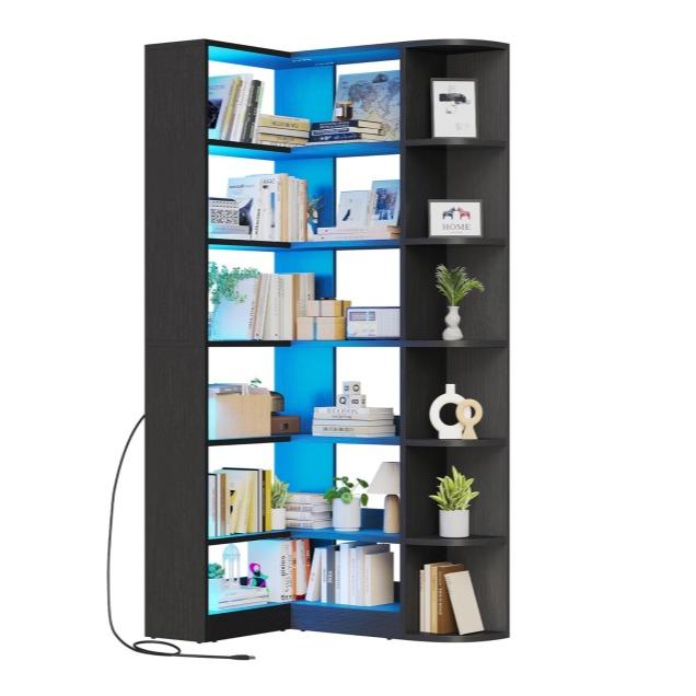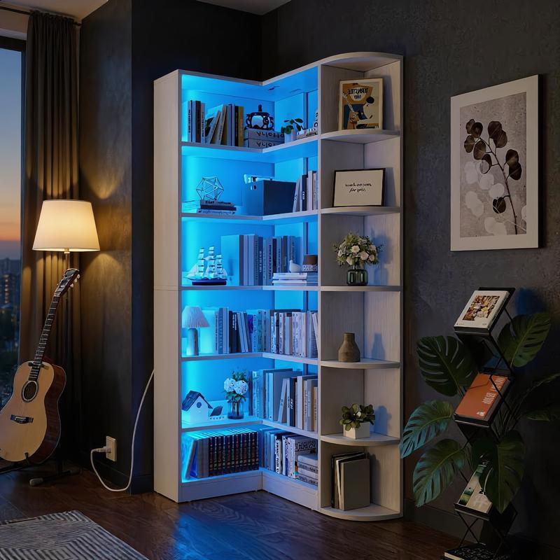 כוננית פינתית 6 קומות בדגם L | תצוגת לד חכמה ופתרון אחסון